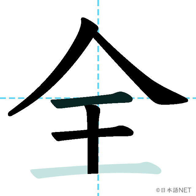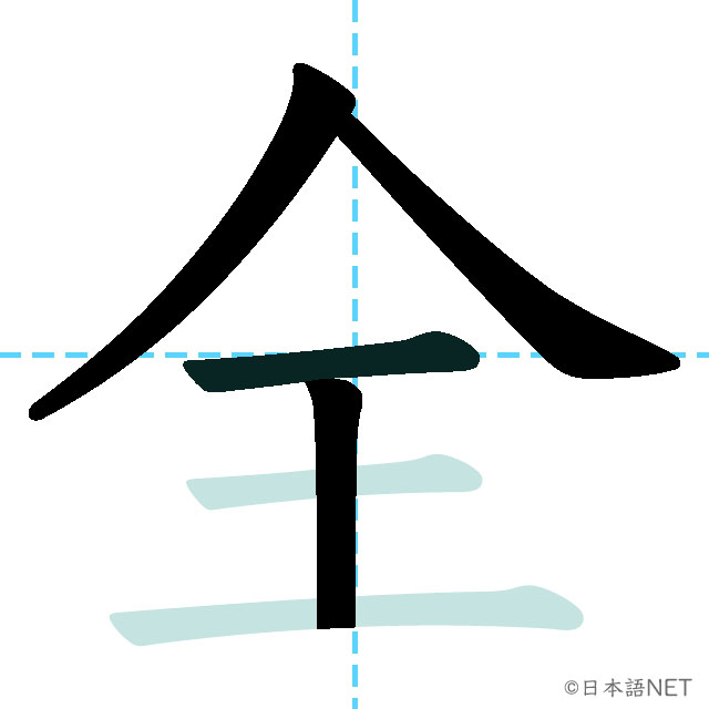 N3 漢字漢字【JLPT N3漢字】「全」の意味・読み方・書き順 2020年7月26日 2020年7月26日 Facebook postはてブLINEPocketFeedlyfa-exclamation-triangle記事内に商品プロモーションが含まれる場合があります 目次1 「全」の漢字について2 「全」の書き順3 「全」を含む言葉4 「全」を含む四字熟語「全」の漢字について読み方音読みぜん訓読みすべ(て) まった(く)意味all部首入画数6JLPTレベルN3 「全」の書き順1画目 2画目3画目4画目5画目6画目「全」を含む言葉全部(ぜんぶ)全員(ぜんいん)全体(ぜんたい)全国(ぜんこく)完全(かんぜん)安全(あんぜん)全く(まったく)全て(すべて)「全」を含む四字熟語完全燃焼完全無欠全身全霊全知全能全力投球 新完全マスター漢字 日本語能力試験N3 Amazon 楽天市場 Yahooショッピング 日本語総まとめ N3 漢字 (「日本語能力試験」対策) Nihongo Soumatome N3 Kanji Kindle Amazon 楽天市場 Yahooショッピング 日本語を学ぶ外国人のための これで覚える! 漢字字典2500ナツメ社 Amazon 楽天市場 Yahooショッピングスポンサーリンク Facebook postはてブLINEPocketFeedly