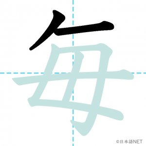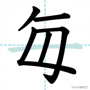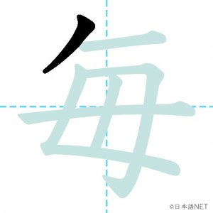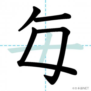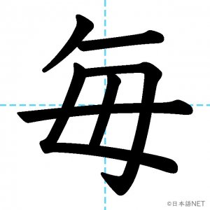 N5 漢字漢字【JLPT N5漢字】「毎」の意味・読み方・書き順 2020年8月11日 2022年1月13日 Facebook postはてブLINEPocketFeedlyfa-exclamation-triangle記事内に商品プロモーションが含まれる場合があります目次1 「毎」の漢字について2 「毎」の書き順3 「毎」を含む言葉4 関連書籍「毎」の漢字について読み方音読みまい訓読みごと意味every部首毋画数6JLPTレベルN5 「毎」の書き順1画目2画目3画目4画目5画目6画目「毎」を含む言葉毎日(まいにち):every day毎週(まいしゅう):every week毎月(まいつき):every month毎年(まいとし):every year毎晩(まいばん):evey night毎回(まいかい):evety time関連書籍 日本語総まとめ N5 かんじ・ことば・ぶんぽう・読む・聞く [英語・ベトナム語版] Nihongo Soumatome N5 Kanji・Vocabulary・Grammar・Reading・Listening Amazon 楽天市場 Yahooショッピング 日本語を学ぶ外国人のための これで覚える! 漢字字典2500ナツメ社 Amazon 楽天市場 Yahooショッピング Facebook postはてブLINEPocketFeedly