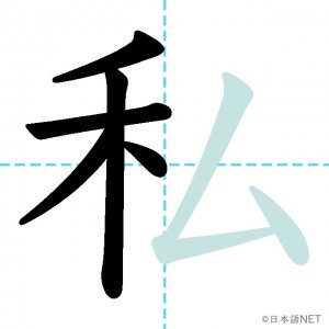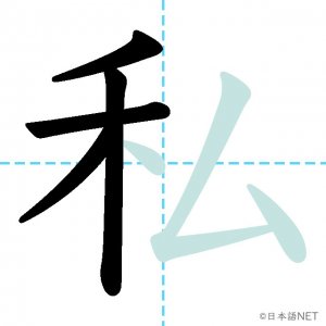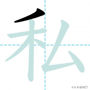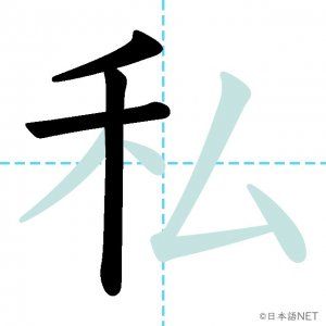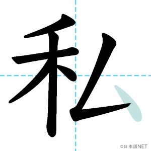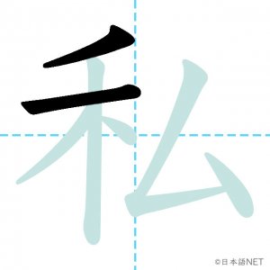 N4 漢字漢字【JLPT N4漢字】「私」の意味・読み方・書き順 2020年8月14日 2020年8月14日 Facebook postはてブLINEPocketFeedlyfa-exclamation-triangle記事内に商品プロモーションが含まれる場合があります目次1 「私」の漢字について2 「私」の書き順3 「私」を含む言葉4 「私」を含む四字熟語5 関連書籍「私」の漢字について読み方音読みし訓読みわたし わたくし意味I / me部首禾画数7JLPTレベルN4 「私」の書き順1画目2画目3画目4画目5画目6画目7画目「私」を含む言葉私(わたし)私立(しりつ)私用(しよう)「私」を含む四字熟語公私混同(こうしこんどう)私利私欲(しりしよく)関連書籍 日本語総まとめ N4 漢字・ことば [英語・ベトナム語版] Nihongo Soumatome N4 Kanji・Vocabulary Amazon 楽天市場 Yahooショッピング 日本語を学ぶ外国人のための これで覚える! 漢字字典2500ナツメ社 Amazon 楽天市場 Yahooショッピング Facebook postはてブLINEPocketFeedly