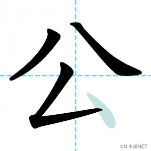 N4 漢字漢字【JLPT N4漢字】「公」の意味・読み方・書き順 2020年8月17日 2020年8月17日 Facebook postはてブLINEPocketFeedlyfa-exclamation-triangle記事内に商品プロモーションが含まれる場合があります目次1 「公」の漢字について2 「公」の書き順3 「公」を含む言葉4 「公」を含む四字熟語5 関連書籍「公」の漢字について読み方音読みこう く訓読みおおやけ意味public部首八画数4JLPTレベルN4 「公」の書き順1画目2画目3画目4画目「公」を含む言葉公園(こうえん)公務員(こうむいん)公開(こうかい)公立(こうりつ)主人公(しゅじんこう)「公」を含む四字熟語公私混同(こうしこんどう)公明正大(こうめいせいだい)関連書籍 日本語総まとめ N4 漢字・ことば [英語・ベトナム語版] Nihongo Soumatome N4 Kanji・Vocabulary Amazon 楽天市場 Yahooショッピング 日本語を学ぶ外国人のための これで覚える! 漢字字典2500ナツメ社 Amazon 楽天市場 Yahooショッピング Facebook postはてブLINEPocketFeedly