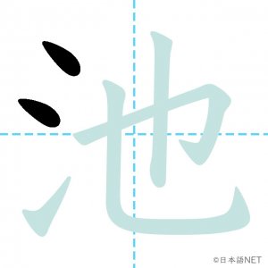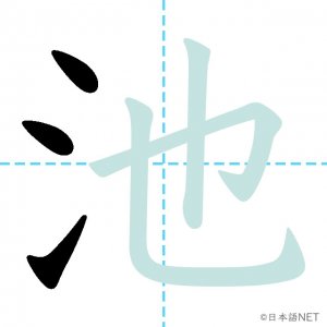 N4 漢字漢字【JLPT N4漢字】「池」の意味・読み方・書き順 2020年8月22日 2020年8月22日 Facebook postはてブLINEPocketFeedlyfa-exclamation-triangle記事内に商品プロモーションが含まれる場合があります目次1 「池」の漢字について2 「池」の書き順3 「池」を含む言葉4 「池」を含む苗字5 関連書籍「池」の漢字について読み方音読みち訓読みいけ意味pond部首水画数6JLPTレベルN4 「池」の書き順1画目2画目3画目4画目5画目6画目「池」を含む言葉池(いけ)電池(でんち)「池」を含む苗字池石(いけいし)池内(いけうち)池上(いけがみ)池口(いけぐち)小池(こいけ)関連書籍 日本語総まとめ N4 漢字・ことば [英語・ベトナム語版] Nihongo Soumatome N4 Kanji・Vocabulary Amazon 楽天市場 Yahooショッピング 日本語を学ぶ外国人のための これで覚える! 漢字字典2500ナツメ社 Amazon 楽天市場 Yahooショッピング Facebook postはてブLINEPocketFeedly