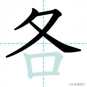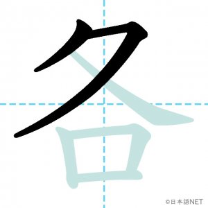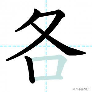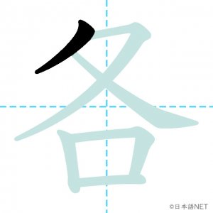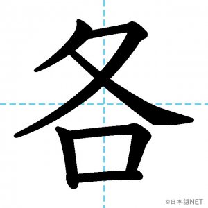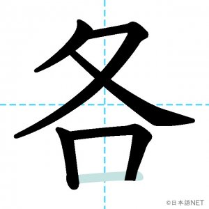 N3 漢字漢字【JLPT N3漢字】「各」の意味・読み方・書き順 2020年8月23日 2020年8月23日 Facebook postはてブLINEPocketFeedlyfa-exclamation-triangle記事内に商品プロモーションが含まれる場合があります目次1 「各」の漢字について2 「各」の書き順3 「各」を含む言葉4 関連書籍「各」の漢字について読み方音読みかく訓読みおのおの意味each部首口画数6JLPTレベルN3 「各」の書き順1画目 2画目3画目4画目 5画目6画目「各」を含む言葉各自(かくじ)各々(おのおの)各地域(かくちいき)各チーム(かくチーム)関連書籍 新完全マスター漢字 日本語能力試験N3 Amazon 楽天市場 Yahooショッピング 日本語総まとめ N3 漢字 (「日本語能力試験」対策) Nihongo Soumatome N3 Kanji Kindle Amazon 楽天市場 Yahooショッピング 日本語を学ぶ外国人のための これで覚える! 漢字字典2500ナツメ社 Amazon 楽天市場 Yahooショッピング Facebook postはてブLINEPocketFeedly