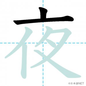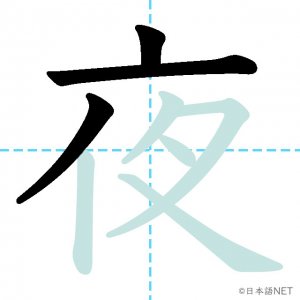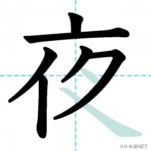 N4 漢字漢字【JLPT N4漢字】「夜」の意味・読み方・書き順 2020年8月25日 2020年8月25日 Facebook postはてブLINEPocketFeedlyfa-exclamation-triangle記事内に商品プロモーションが含まれる場合があります目次1 「夜」の漢字について2 「夜」の書き順3 「夜」を含む言葉4 関連書籍「夜」の漢字について読み方音読みや訓読みよ よる意味night / evening部首夕画数8JLPTレベルN4 「夜」の書き順1画目2画目3画目4画目5画目6画目7画目8画目「夜」を含む言葉夜(よる)今夜(こんや)夜中(よなか)夜明け(よあけ)夜行バス(やこうバス)徹夜(てつや)関連書籍 日本語総まとめ N4 漢字・ことば [英語・ベトナム語版] Nihongo Soumatome N4 Kanji・Vocabulary Amazon 楽天市場 Yahooショッピング 日本語を学ぶ外国人のための これで覚える! 漢字字典2500ナツメ社 Amazon 楽天市場 Yahooショッピング Facebook postはてブLINEPocketFeedly