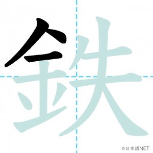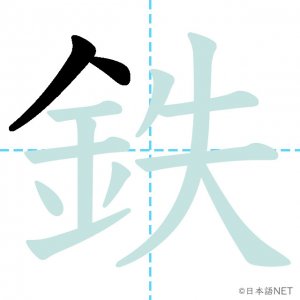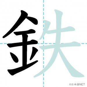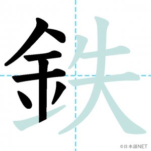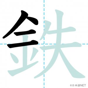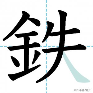 N4 漢字漢字【JLPT N4漢字】「鉄」の意味・読み方・書き順 2020年8月29日 2021年2月16日 Facebook postはてブLINEPocketFeedlyfa-exclamation-triangle記事内に商品プロモーションが含まれる場合があります目次1 「鉄」の漢字について2 「鉄」の書き順3 「鉄」を含む言葉4 「鉄」を含むことわざ5 関連書籍「鉄」の漢字について読み方音読みてつ訓読み-意味iron部首金画数13JLPTレベルN4 「鉄」の書き順1画目2画目3画目4画目5画目6画目7画目8画目9画目10画目11画目12画目13画目「鉄」を含む言葉地下鉄(ちかてつ)鉄道(てつどう)鉄(てつ)鉄砲(てっぽう)「鉄」を含むことわざ鉄は熱いうちに打て下手な鉄砲も数撃ちゃ当たる関連書籍 日本語総まとめ N4 漢字・ことば [英語・ベトナム語版] Nihongo Soumatome N4 Kanji・Vocabulary Amazon 楽天市場 Yahooショッピング 日本語を学ぶ外国人のための これで覚える! 漢字字典2500ナツメ社 Amazon 楽天市場 Yahooショッピング Facebook postはてブLINEPocketFeedly