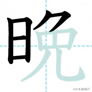 N4 漢字漢字【JLPT N4漢字】「晩」の意味・読み方・書き順 2020年8月30日 2020年8月30日 Facebook postはてブLINEPocketFeedlyfa-exclamation-triangle記事内に商品プロモーションが含まれる場合があります目次1 「晩」の漢字について2 「晩」の書き順3 「晩」を含む言葉4 「晩」を含む四字熟語5 関連書籍「晩」の漢字について読み方音読みばん訓読み-意味night部首人画数12JLPTレベルN4 「晩」の書き順1画目2画目3画目4画目5画目6画目7画目8画目9画目10画目11画目12画目「晩」を含む言葉今晩(こんばん)晩ご飯(ばんごはん)毎晩(まいばん)昨晩(さくばん)「晩」を含む四字熟語大器晩成(たいきばんせい)関連書籍 日本語総まとめ N4 漢字・ことば [英語・ベトナム語版] Nihongo Soumatome N4 Kanji・Vocabulary Amazon 楽天市場 Yahooショッピング 日本語を学ぶ外国人のための これで覚える! 漢字字典2500ナツメ社 Amazon 楽天市場 Yahooショッピング Facebook postはてブLINEPocketFeedly