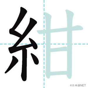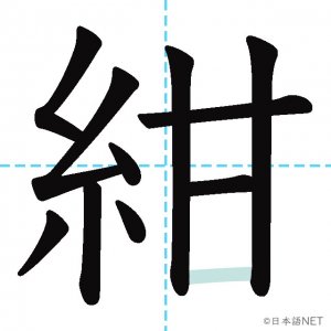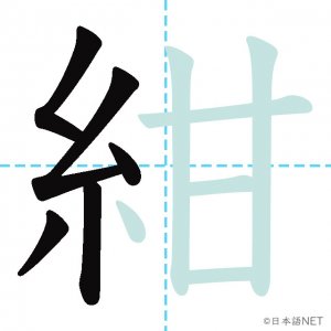 N1 漢字漢字【JLPT N1漢字】「紺」の意味・読み方・書き順 2020年8月31日 2020年9月1日 Facebook postはてブLINEPocketFeedlyfa-exclamation-triangle記事内に商品プロモーションが含まれる場合があります目次1 「紺」の漢字について2 「紺」の書き順3 「紺」を含む言葉4 色の漢字クイズ5 関連漢字(色の漢字)6 関連書籍「紺」の漢字について読み方音読みこん訓読み-意味navy部首糸画数11JLPTレベルN1 「紺」の書き順1画目2画目3画目4画目5画目6画目7画目8画目9画目10画目11画目「紺」を含む言葉紺色(こんいろ)色の漢字クイズクイズへfa-angle-double-right関連漢字(色の漢字)白水金色黒銀赤青黄緑紫関連書籍 日本語総まとめ N1 漢字 [英語・ベトナム語版] (「日本語能力試験」対策) Amazon 楽天市場 Yahooショッピング 新完全マスター漢字 日本語能力試験N1 Amazon 楽天市場 Yahooショッピング 日本語を学ぶ外国人のための これで覚える! 漢字字典2500ナツメ社 Amazon 楽天市場 Yahooショッピング