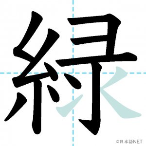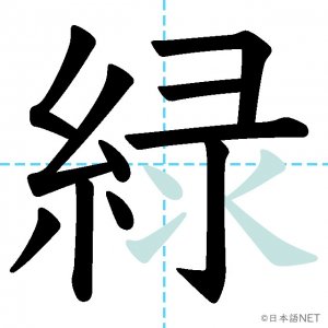 N2 漢字漢字【JLPT N2漢字】「緑」の意味・読み方・書き順 2020年9月1日 2020年9月1日 Facebook postはてブLINEPocketFeedlyfa-exclamation-triangle記事内に商品プロモーションが含まれる場合があります目次1 「緑」の漢字について2 「緑」の書き順3 「緑」を含む言葉4 色の漢字クイズ5 関連漢字(色の漢字)6 関連書籍「緑」の漢字について読み方音読みりょく ろく訓読みみどり意味green部首糸画数14JLPTレベルN2 「緑」の書き順1画目2画目3画目4画目5画目6画目7画目8画目9画目10画目11画目12画目13画目14画目「緑」を含む言葉緑(みどり)黄緑(きみどり)色の漢字クイズクイズへfa-angle-double-right関連漢字(色の漢字)白水金色黒銀赤青黄紫紺関連書籍 日本語総まとめ N2 漢字 [英語・ベトナム語版] Nihongo Soumatome N2 Kanji (English/Vietnamese Edition) Amazon 楽天市場 Yahooショッピング 新完全マスター漢字 日本語能力試験N2 Amazon 楽天市場 Yahooショッピング 日本語を学ぶ外国人のための これで覚える! 漢字字典2500ナツメ社 Amazon 楽天市場 Yahooショッピング Facebook postはてブLINEPocketFeedly