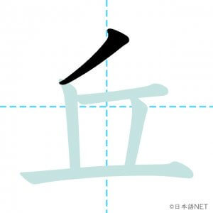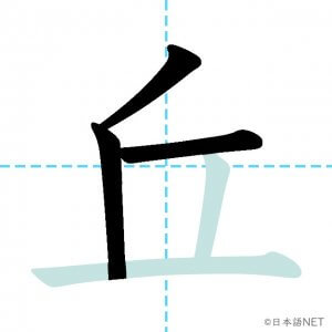 N1 漢字漢字【JLPT N1漢字】「丘」の意味・読み方・書き順 2020年9月5日 2020年9月8日 Facebook postはてブLINEPocketFeedlyfa-exclamation-triangle記事内に商品プロモーションが含まれる場合があります目次1 「丘」の漢字について2 「丘」の書き順3 「丘」を含む言葉4 自然の漢字クイズ5 関連漢字6 関連書籍「丘」の漢字について読み方音読みきゅう訓読みおか意味hill部首一画数5JLPTレベルN1 「丘」の書き順1画目2画目3画目4画目5画目「丘」を含む言葉丘(おか)砂丘(さきゅう)自然の漢字クイズクイズへfa-angle-double-right関連漢字山川空木林森海風葉石岩湖【日本語語彙】自然の言葉リスト2020.6.19自然の言葉 水:water 日本語 英語 川(かわ) river 海(うみ) sea 池(いけ) pond 湖(みずうみ) lake 滝(たき) waterfall 木:tree 日本語 英語 木(き) tree 葉(は) leaf 枝(えだ) branch 根(ね) 根っこ(ねっこ) root 林...関連書籍 日本語総まとめ N1 漢字 [英語・ベトナム語版] (「日本語能力試験」対策) Amazon 楽天市場 Yahooショッピング 新完全マスター漢字 日本語能力試験N1 Amazon 楽天市場 Yahooショッピング 日本語を学ぶ外国人のための これで覚える! 漢字字典2500ナツメ社 Amazon 楽天市場 Yahooショッピング Facebook postはてブLINEPocketFeedly