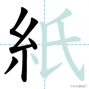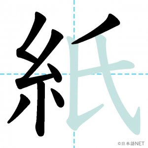 N4 漢字漢字【JLPT N4漢字】「紙」の意味・読み方・書き順 2020年9月8日 2020年9月8日 Facebook postはてブLINEPocketFeedlyfa-exclamation-triangle記事内に商品プロモーションが含まれる場合があります目次1 「紙」の漢字について2 「紙」の書き順3 「紙」を含む言葉4 関連書籍「紙」の漢字について読み方音読みし訓読みかみ意味paper部首糸画数10JLPTレベルN4 「紙」の書き順1画目2画目3画目4画目5画目6画目7画目8画目9画目10画目「紙」を含む言葉紙(かみ)手紙(てがみ)折り紙(おりがみ)紙幣(しへい)和紙(わし)用紙(ようし)関連書籍 日本語総まとめ N4 漢字・ことば [英語・ベトナム語版] Nihongo Soumatome N4 Kanji・Vocabulary Amazon 楽天市場 Yahooショッピング 日本語を学ぶ外国人のための これで覚える! 漢字字典2500ナツメ社 Amazon 楽天市場 Yahooショッピング Facebook postはてブLINEPocketFeedly