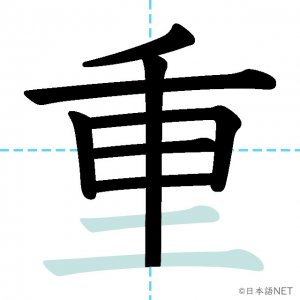 N4 漢字漢字【JLPT N4漢字】「重」の意味・読み方・書き順 2020年9月12日 2020年9月12日 Facebook postはてブLINEPocketFeedlyfa-exclamation-triangle記事内に商品プロモーションが含まれる場合があります目次1 「重」の漢字について2 「重」の書き順3 「重」を含む言葉4 関連書籍「重」の漢字について読み方音読みじゅう ちょう訓読みおも-い かさ-ねる え意味heavy部首里画数9JLPTレベルN4 「重」の書き順1画目2画目3画目4画目5画目6画目7画目8画目9画目「重」を含む言葉重い(おもい)体重(たいじゅう)重要な(じゅうような)貴重な(きちょうな)重大な(じゅうだいな)重ねる(かさねる)重力(じゅうりょく)一重(ひとえ)関連書籍 日本語総まとめ N4 漢字・ことば [英語・ベトナム語版] Nihongo Soumatome N4 Kanji・Vocabulary Amazon 楽天市場 Yahooショッピング 日本語を学ぶ外国人のための これで覚える! 漢字字典2500ナツメ社 Amazon 楽天市場 Yahooショッピング Facebook postはてブLINEPocketFeedly