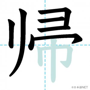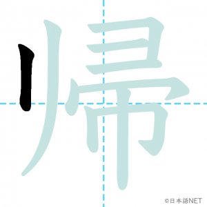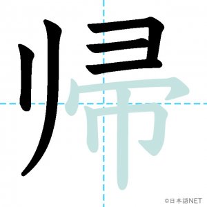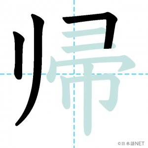 N4 漢字漢字【JLPT N4漢字】「帰」の意味・読み方・書き順 2020年9月14日 2020年9月14日 Facebook postはてブLINEPocketFeedlyfa-exclamation-triangle記事内に商品プロモーションが含まれる場合があります目次1 「帰」の漢字について2 「帰」の書き順3 「帰」を含む言葉4 関連書籍「帰」の漢字について読み方音読みき訓読みかえ-る意味to return / to go home部首巾画数10JLPTレベルN4 「帰」の書き順1画目2画目3画目4画目5画目6画目7画目8画目9画目10画目「帰」を含む言葉帰る(かえる)帰す(かえす)帰宅(きたく)帰郷(ききょう)関連書籍 日本語総まとめ N4 漢字・ことば [英語・ベトナム語版] Nihongo Soumatome N4 Kanji・Vocabulary Amazon 楽天市場 Yahooショッピング 日本語を学ぶ外国人のための これで覚える! 漢字字典2500ナツメ社 Amazon 楽天市場 Yahooショッピング Facebook postはてブLINEPocketFeedly