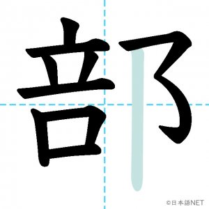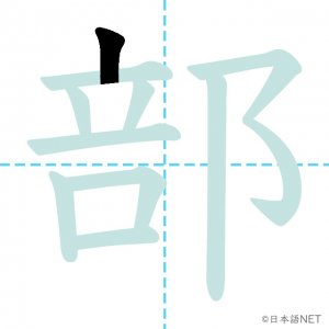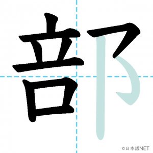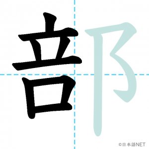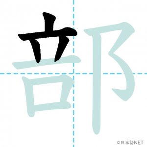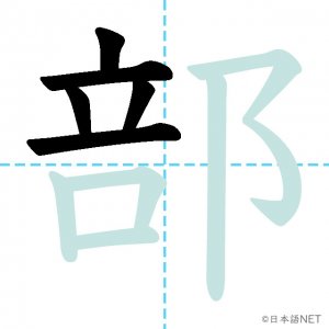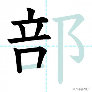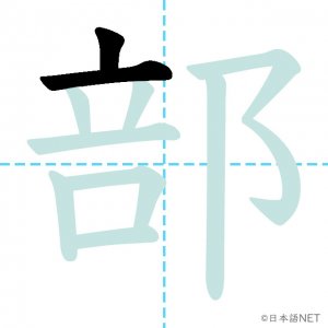 N4 漢字漢字【JLPT N4漢字】「部」の意味・読み方・書き順 2020年9月18日 2020年9月18日 Facebook postはてブLINEPocketFeedlyfa-exclamation-triangle記事内に商品プロモーションが含まれる場合があります目次1 「部」の漢字について2 「部」の書き順3 「部」を含む言葉4 関連書籍「部」の漢字について読み方音読みぶ訓読み-意味section / part部首阝画数11JLPTレベルN4 「部」の書き順1画目2画目3画目4画目5画目6画目7画目8画目9画目10画目11画目「部」を含む言葉部屋(へや)全部(ぶちょう)部署(ぶしょ)部門(ぶもん)部首(ぶしゅ)本部(ほんぶ)支部(しぶ)部下(ぶか)一部(いちぶ)部品(ぶひん)関連書籍 日本語総まとめ N4 漢字・ことば [英語・ベトナム語版] Nihongo Soumatome N4 Kanji・Vocabulary Amazon 楽天市場 Yahooショッピング 日本語を学ぶ外国人のための これで覚える! 漢字字典2500ナツメ社 Amazon 楽天市場 Yahooショッピング Facebook postはてブLINEPocketFeedly