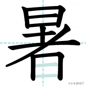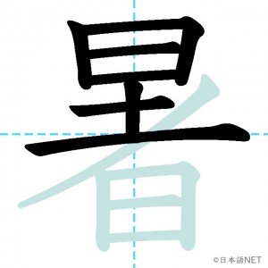 N4 漢字漢字【JLPT N4漢字】「暑」の意味・読み方・書き順 2020年9月19日 2020年9月19日 Facebook postはてブLINEPocketFeedlyfa-exclamation-triangle記事内に商品プロモーションが含まれる場合があります目次1 「暑」の漢字について2 「暑」の書き順3 「暑」を含む言葉4 「暑」を含むことわざ5 関連書籍「暑」の漢字について読み方音読みしょ訓読みあつ-い意味hot部首日画数12JLPTレベルN4 「暑」の書き順1画目2画目3画目4画目5画目6画目7画目8画目9画目10画目11画目12画目「暑」を含む言葉暑い(あつい)蒸し暑い(むしあつい)猛暑(もうしょ)残暑(ざんしょ)暑中見舞い(しょちゅうみまい)「暑」を含むことわざ暑さ寒さも彼岸まで暑さ忘れれば影忘れる関連書籍 日本語総まとめ N4 漢字・ことば [英語・ベトナム語版] Nihongo Soumatome N4 Kanji・Vocabulary Amazon 楽天市場 Yahooショッピング 日本語を学ぶ外国人のための これで覚える! 漢字字典2500ナツメ社 Amazon 楽天市場 Yahooショッピング Facebook postはてブLINEPocketFeedly