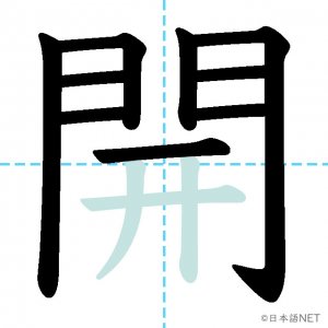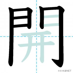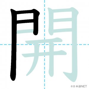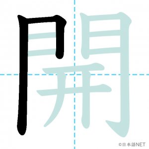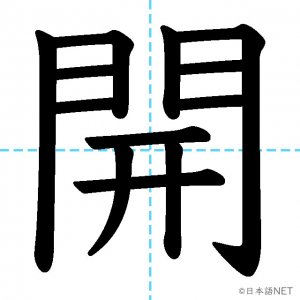 N4 漢字漢字【JLPT N4漢字】「開」の意味・読み方・書き順 2020年9月21日 2020年9月21日 Facebook postはてブLINEPocketFeedlyfa-exclamation-triangle記事内に商品プロモーションが含まれる場合があります目次1 「開」の漢字について2 「開」の書き順3 「開」を含む言葉4 「開」を含むことわざ5 関連書籍「開」の漢字について読み方音読みかい訓読みひら-く あ-ける意味to open部首門画数12JLPTレベルN4 「開」の書き順1画目2画目3画目4画目5画目6画目7画目8画目9画目10画目11画目12画目「開」を含む言葉開ける(あける)開く(あく)開く(ひらく)開始(かいし)再開(さいかい)開催(かいさい)公開(こうかい)切開(せっかい)未開(みかい)「開」を含むことわざ開口一番(かいこういちばん)関連書籍 日本語総まとめ N4 漢字・ことば [英語・ベトナム語版] Nihongo Soumatome N4 Kanji・Vocabulary Amazon 楽天市場 Yahooショッピング 日本語を学ぶ外国人のための これで覚える! 漢字字典2500ナツメ社 Amazon 楽天市場 Yahooショッピング Facebook postはてブLINEPocketFeedly