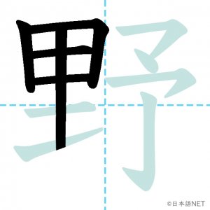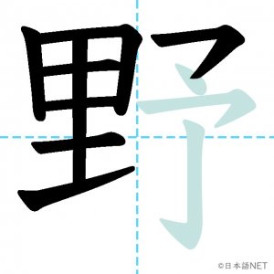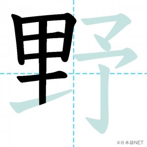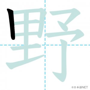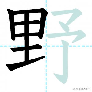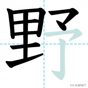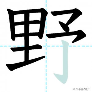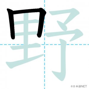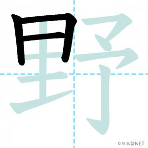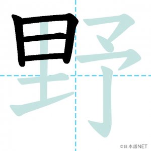 N4 漢字漢字【JLPT N4漢字】「野」の意味・読み方・書き順 2020年9月23日 2020年9月23日 Facebook postはてブLINEPocketFeedlyfa-exclamation-triangle記事内に商品プロモーションが含まれる場合があります目次1 「野」の漢字について2 「野」の書き順3 「野」を含む言葉4 関連書籍「野」の漢字について読み方音読みや訓読みの意味field部首里画数11JLPTレベルN4 「野」の書き順1画目2画目3画目4画目5画目6画目7画目8画目9画目10画目11画目「野」を含む言葉野菜(やさい)野生(やせい)分野(ぶんや)荒野(こうや)野原(のはら)外野(がいや)野望(やぼう)野心(やしん)関連書籍 日本語総まとめ N4 漢字・ことば [英語・ベトナム語版] Nihongo Soumatome N4 Kanji・Vocabulary Amazon 楽天市場 Yahooショッピング 日本語を学ぶ外国人のための これで覚える! 漢字字典2500ナツメ社 Amazon 楽天市場 Yahooショッピング Facebook postはてブLINEPocketFeedly