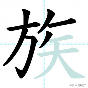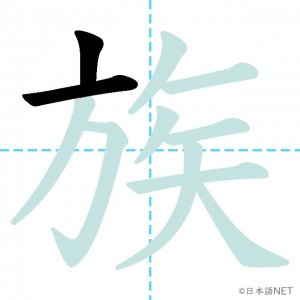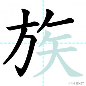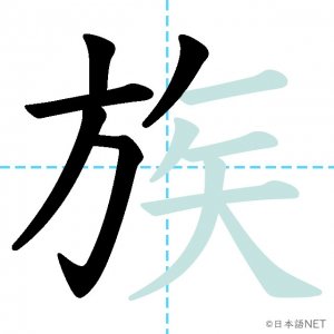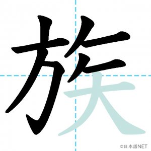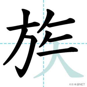 N4 漢字漢字【JLPT N4漢字】「族」の意味・読み方・書き順 2020年9月23日 2020年9月23日 Facebook postはてブLINEPocketFeedlyfa-exclamation-triangle記事内に商品プロモーションが含まれる場合があります目次1 「族」の漢字について2 「族」の書き順3 「族」を含む言葉4 関連書籍「族」の漢字について読み方音読みぞく訓読み-意味tribe / family部首方画数11JLPTレベルN4 「族」の書き順1画目2画目3画目4画目5画目6画目7画目8画目9画目10画目11画目「族」を含む言葉家族(かぞく)民族(みんぞく)一族(いちぞく)貴族(きぞく)関連書籍 日本語総まとめ N4 漢字・ことば [英語・ベトナム語版] Nihongo Soumatome N4 Kanji・Vocabulary Amazon 楽天市場 Yahooショッピング 日本語を学ぶ外国人のための これで覚える! 漢字字典2500ナツメ社 Amazon 楽天市場 Yahooショッピング Facebook postはてブLINEPocketFeedly
