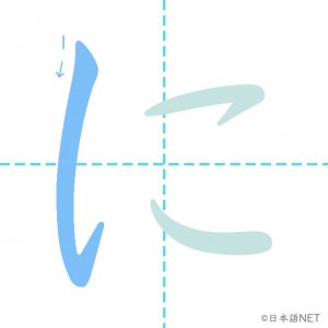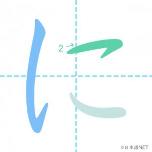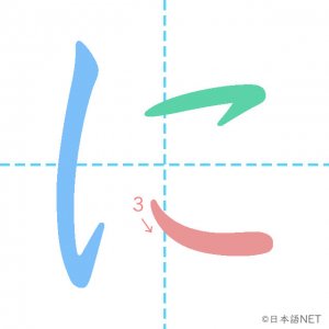 ひらがな仮名ひらがな「に」の書き順 2020年9月28日 2020年9月28日 Facebook postはてブLINEPocketFeedlyfa-exclamation-triangle記事内に商品プロモーションが含まれる場合があります読み方 (ローマ字)訓令式niヘボン式ni画数3目次1 「に」の書き順2 「に」を含む言葉3 ひらがなクイズ4 関連書籍「に」の書き順1画目2画目3画目 「に」を含む言葉あに(兄)おに(鬼)かに(蟹)くに(国)たに(谷)なに(何)に(二)にあう(似合う)にかい(二回/二階)にく(肉)にし(西)にわ(庭)ひらがなクイズクイズへfa-angle-double-right関連書籍 すぐ書ける! きれいに書ける! ひらがな・カタカナ練習ノート (日本語文字学習シリーズ) Amazon 楽天市場 Yahooショッピング Facebook postはてブLINEPocketFeedly