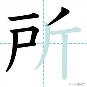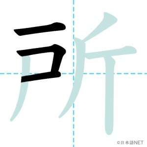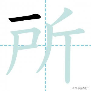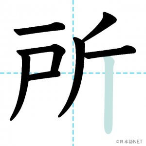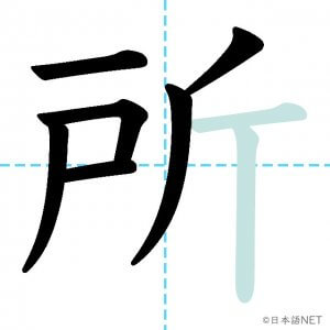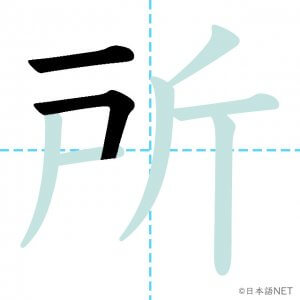 N4 漢字漢字【JLPT N4漢字】「所」の意味・読み方・書き順 2020年10月5日 2020年10月5日 Facebook postはてブLINEPocketFeedlyfa-exclamation-triangle記事内に商品プロモーションが含まれる場合があります目次1 「所」の漢字について2 「所」の書き順3 「所」を含む言葉4 関連書籍「所」の漢字について読み方音読みしょ訓読みところ意味place部首戸画数8JLPTレベルN4 「所」の書き順1画目2画目3画目4画目5画目6画目7画目8画目「所」を含む言葉住所(じゅうしょ)場所(ばしょ)台所(だいどころ)近所(きんじょ)相談所(そうだんじょ)喫煙所(きつえんじょ)便所(べんじょ)長所(ちょうしょ)短所(たんしょ)名所(めいしょ)関連書籍 日本語総まとめ N4 漢字・ことば [英語・ベトナム語版] Nihongo Soumatome N4 Kanji・Vocabulary Amazon 楽天市場 Yahooショッピング 日本語を学ぶ外国人のための これで覚える! 漢字字典2500ナツメ社 Amazon 楽天市場 Yahooショッピング Facebook postはてブLINEPocketFeedly