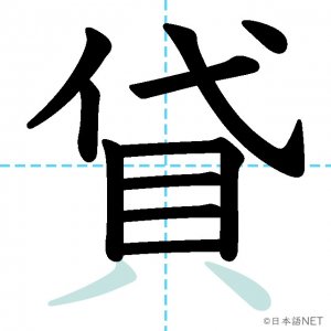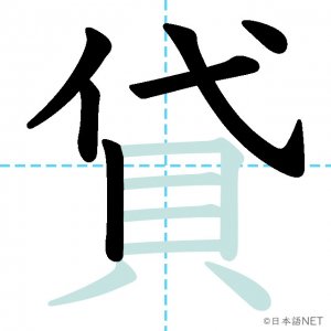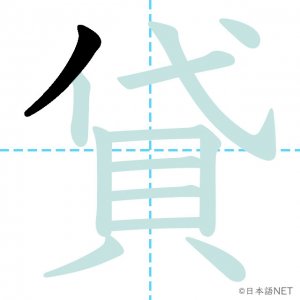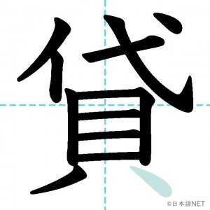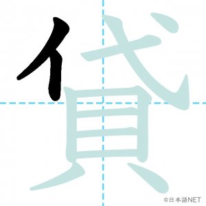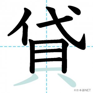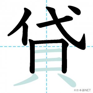 N4 漢字漢字【JLPT N4漢字】「貸」の意味・読み方・書き順 2020年10月8日 2022年2月21日 Facebook postはてブLINEPocketFeedlyfa-exclamation-triangle記事内に商品プロモーションが含まれる場合があります目次1 「貸」の漢字について2 「貸」の書き順3 「貸」を含む言葉4 関連書籍「貸」の漢字について読み方音読みたい訓読みか-す意味to lend部首貝画数12JLPTレベルN4 「貸」の書き順1画目2画目3画目4画目5画目6画目7画目8画目9画目10画目11画目12画目「貸」を含む言葉貸す(かす):to lend賃貸(ちんたい):rent貸し出し(かしだし):lending ・ loaning貸家(かしや):house for rent関連書籍 日本語総まとめ N4 漢字・ことば [英語・ベトナム語版] Nihongo Soumatome N4 Kanji・Vocabulary Amazon 楽天市場 Yahooショッピング 日本語を学ぶ外国人のための これで覚える! 漢字字典2500ナツメ社 Amazon 楽天市場 Yahooショッピング Facebook postはてブLINEPocketFeedly