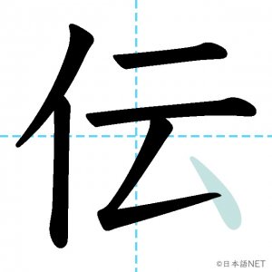 N3 漢字漢字【JLPT N3漢字】「伝」の意味・読み方・書き順 2020年10月15日 2020年10月15日 Facebook postはてブLINEPocketFeedlyfa-exclamation-triangle記事内に商品プロモーションが含まれる場合があります目次1 「伝」の漢字について2 「伝」の書き順3 「伝」を含む言葉4 関連書籍「伝」の漢字について読み方音読みでん訓読みつた-わる つた-える意味to transmit / to report / legend部首人(亻)画数6JLPTレベルN3 「伝」の書き順1画目2画目3画目4画目5画目6画目「伝」を含む言葉手伝う(てつだう)伝える(つたえる)伝統(でんとう)宣伝(せんでん)言い伝え(いいつたえ)伝記(でんき)伝説(でんせつ)関連書籍 新完全マスター漢字 日本語能力試験N3 Amazon 楽天市場 Yahooショッピング 日本語総まとめ N3 漢字 (「日本語能力試験」対策) Nihongo Soumatome N3 Kanji Kindle Amazon 楽天市場 Yahooショッピング 日本語を学ぶ外国人のための これで覚える! 漢字字典2500ナツメ社 Amazon 楽天市場 Yahooショッピング Facebook postはてブLINEPocketFeedly