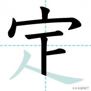 N3 漢字漢字【JLPT N3漢字】「定」の意味・読み方・書き順 2020年10月16日 2020年10月16日 Facebook postはてブLINEPocketFeedlyfa-exclamation-triangle記事内に商品プロモーションが含まれる場合があります目次1 「定」の漢字について2 「定」の書き順3 「定」を含む言葉4 関連書籍「定」の漢字について読み方音読みてい じょう訓読みさだ-める さだ-まる さだ-か意味to decide / to determine部首宀画数8JLPTレベルN3 「定」の書き順1画目2画目3画目4画目5画目6画目7画目8画目「定」を含む言葉予定(よてい)決定(けってい)定期的に(ていきてきに)安定(あんてい)定義(ていぎ)未定(みてい)仮定(かてい)肯定(こうてい)限定(げんてい)固定(こてい)改定(かいてい)関連書籍 新完全マスター漢字 日本語能力試験N3 Amazon 楽天市場 Yahooショッピング 日本語総まとめ N3 漢字 (「日本語能力試験」対策) Nihongo Soumatome N3 Kanji Kindle Amazon 楽天市場 Yahooショッピング 日本語を学ぶ外国人のための これで覚える! 漢字字典2500ナツメ社 Amazon 楽天市場 Yahooショッピング Facebook postはてブLINEPocketFeedly