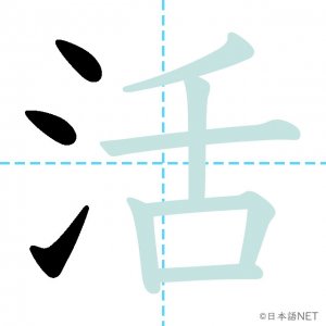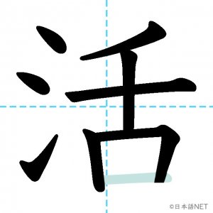 N3 漢字漢字【JLPT N3漢字】「活」の意味・読み方・書き順 2020年10月19日 2020年10月19日 Facebook postはてブLINEPocketFeedlyfa-exclamation-triangle記事内に商品プロモーションが含まれる場合があります目次1 「活」の漢字について2 「活」の書き順3 「活」を含む言葉4 関連書籍「活」の漢字について読み方音読みかつ訓読みい-きる い-かす意味lively部首水(氵,氺)画数9JLPTレベルN3 「活」の書き順1画目2画目3画目4画目5画目6画目7画目8画目9画目「活」を含む言葉生活(せいかつ)活動(かつどう)活発(かっぱつ)関連書籍 新完全マスター漢字 日本語能力試験N3 Amazon 楽天市場 Yahooショッピング 日本語総まとめ N3 漢字 (「日本語能力試験」対策) Nihongo Soumatome N3 Kanji Kindle Amazon 楽天市場 Yahooショッピング 日本語を学ぶ外国人のための これで覚える! 漢字字典2500ナツメ社 Amazon 楽天市場 Yahooショッピング Facebook postはてブLINEPocketFeedly
