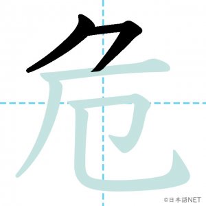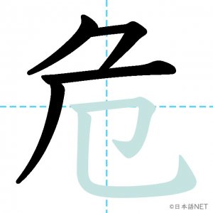 N3 漢字漢字【JLPT N3漢字】「危」の意味・読み方・書き順 2020年10月23日 2020年10月23日 Facebook postはてブLINEPocketFeedlyfa-exclamation-triangle記事内に商品プロモーションが含まれる場合があります目次1 「危」の漢字について2 「危」の書き順3 「危」を含む言葉4 関連書籍「危」の漢字について読み方音読みき訓読みあぶな-い あやう-い意味dangerous部首卩画数6JLPTレベルN3 「危」の書き順1画目2画目3画目4画目5画目6画目「危」を含む言葉危ない(あぶない)危険な(きけんな)危害(きがい)危機(きき)危惧(きぐ)危篤(きとく)関連書籍 新完全マスター漢字 日本語能力試験N3 Amazon 楽天市場 Yahooショッピング 日本語総まとめ N3 漢字 (「日本語能力試験」対策) Nihongo Soumatome N3 Kanji Kindle Amazon 楽天市場 Yahooショッピング 日本語を学ぶ外国人のための これで覚える! 漢字字典2500ナツメ社 Amazon 楽天市場 Yahooショッピング Facebook postはてブLINEPocketFeedly