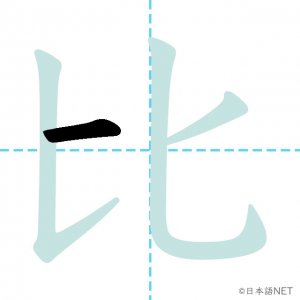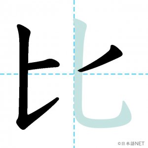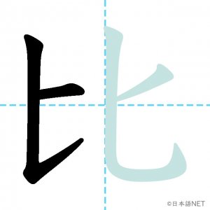 N3 漢字漢字【JLPT N3漢字】「比」の意味・読み方・書き順 2020年10月23日 2021年2月10日 Facebook postはてブLINEPocketFeedlyfa-exclamation-triangle記事内に商品プロモーションが含まれる場合があります目次1 「比」の漢字について2 「比」の書き順3 「比」を含む言葉4 「比」を含むことわざ5 関連書籍「比」の漢字について読み方音読みひ訓読みくらべる意味to compare部首比画数4JLPTレベルN3 「比」の書き順1画目2画目3画目4画目「比」を含む言葉比べる(くらべる)比較する(ひかくする)比例(ひれい)対比(たいひ)比率(ひりつ)比喩(ひゆ)「比」を含むことわざ団栗の背比べ関連書籍 新完全マスター漢字 日本語能力試験N3 Amazon 楽天市場 Yahooショッピング 日本語総まとめ N3 漢字 (「日本語能力試験」対策) Nihongo Soumatome N3 Kanji Kindle Amazon 楽天市場 Yahooショッピング 日本語を学ぶ外国人のための これで覚える! 漢字字典2500ナツメ社 Amazon 楽天市場 Yahooショッピング Facebook postはてブLINEPocketFeedly