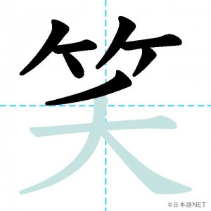 N3 漢字漢字【JLPT N3漢字】「笑」の意味・読み方・書き順 2020年10月26日 2021年2月16日 Facebook postはてブLINEPocketFeedlyfa-exclamation-triangle記事内に商品プロモーションが含まれる場合があります目次1 「笑」の漢字について2 「笑」の書き順3 「笑」を含む言葉4 「笑」を含むことわざ5 関連書籍「笑」の漢字について読み方音読みしょう訓読みわら-う え-む意味to laugh部首竹 (⺮)画数10JLPTレベルN3 「笑」の書き順1画目2画目3画目4画目5画目6画目7画目8画目9画目10画目「笑」を含む言葉笑う(わらう)笑顔(えがお)爆笑(ばくしょう)微笑(びしょう)「笑」を含むことわざ笑う門には福来る関連書籍 新完全マスター漢字 日本語能力試験N3 Amazon 楽天市場 Yahooショッピング 日本語総まとめ N3 漢字 (「日本語能力試験」対策) Nihongo Soumatome N3 Kanji Kindle Amazon 楽天市場 Yahooショッピング 日本語を学ぶ外国人のための これで覚える! 漢字字典2500ナツメ社 Amazon 楽天市場 Yahooショッピング Facebook postはてブLINEPocketFeedly