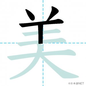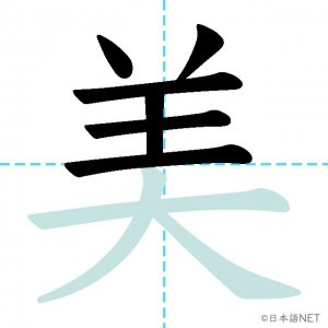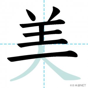 N3 漢字漢字【JLPT N3漢字】「美」の意味・読み方・書き順 2020年10月28日 2020年10月28日 Facebook postはてブLINEPocketFeedlyfa-exclamation-triangle記事内に商品プロモーションが含まれる場合があります目次1 「美」の漢字について2 「美」の書き順3 「美」を含む言葉4 関連書籍「美」の漢字について読み方音読みび訓読みうつく-しい意味beauty部首羊画数9JLPTレベルN3 「美」の書き順1画目2画目3画目4画目5画目6画目7画目8画目9画目「美」を含む言葉美しい(うつくしい)美人(びじん)美術館(びじゅつかん)褒美(ほうび)関連書籍 新完全マスター漢字 日本語能力試験N3 Amazon 楽天市場 Yahooショッピング 日本語総まとめ N3 漢字 (「日本語能力試験」対策) Nihongo Soumatome N3 Kanji Kindle Amazon 楽天市場 Yahooショッピング 日本語を学ぶ外国人のための これで覚える! 漢字字典2500ナツメ社 Amazon 楽天市場 Yahooショッピング Facebook postはてブLINEPocketFeedly