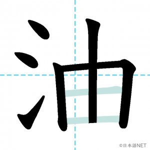 N3 漢字漢字【JLPT N3漢字】「油」の意味・読み方・書き順 2020年10月29日 2020年10月29日 Facebook postはてブLINEPocketFeedlyfa-exclamation-triangle記事内に商品プロモーションが含まれる場合があります目次1 「油」の漢字について2 「油」の書き順3 「油」を含む言葉4 「油」を含む四字熟語5 関連書籍「油」の漢字について読み方音読みゆ訓読みあぶら意味oil / fat部首水(氵,氺)画数8JLPTレベルN3 「油」の書き順1画目2画目3画目4画目5画目6画目7画目8画目「油」を含む言葉油(あぶら)石油(せきゆ)灯油(とうゆ)醤油(しょうゆ)油絵(あぶらえ)油脂(ゆし)油断(ゆだん)「油」を含む四字熟語油断大敵(ゆだんたいてき)関連書籍 新完全マスター漢字 日本語能力試験N3 Amazon 楽天市場 Yahooショッピング 日本語総まとめ N3 漢字 (「日本語能力試験」対策) Nihongo Soumatome N3 Kanji Kindle Amazon 楽天市場 Yahooショッピング 日本語を学ぶ外国人のための これで覚える! 漢字字典2500ナツメ社 Amazon 楽天市場 Yahooショッピング Facebook postはてブLINEPocketFeedly