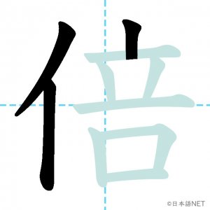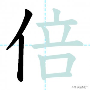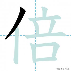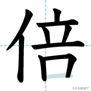 N3 漢字漢字【JLPT N3漢字】「倍」の意味・読み方・書き順 2020年10月29日 2020年10月29日 Facebook postはてブLINEPocketFeedlyfa-exclamation-triangle記事内に商品プロモーションが含まれる場合があります目次1 「倍」の漢字について2 「倍」の書き順3 「倍」を含む言葉4 関連書籍「倍」の漢字について読み方音読みばい訓読み-意味twice / double / times部首人(亻)画数10JLPTレベルN3 「倍」の書き順1画目2画目3画目4画目5画目6画目7画目8画目9画目10画目「倍」を含む言葉倍(ばい)倍数(ばいすう)倍率(ばいりつ)倍増(ばいぞう)関連書籍 新完全マスター漢字 日本語能力試験N3 Amazon 楽天市場 Yahooショッピング 日本語総まとめ N3 漢字 (「日本語能力試験」対策) Nihongo Soumatome N3 Kanji Kindle Amazon 楽天市場 Yahooショッピング 日本語を学ぶ外国人のための これで覚える! 漢字字典2500ナツメ社 Amazon 楽天市場 Yahooショッピング Facebook postはてブLINEPocketFeedly