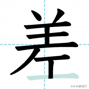 N3 漢字漢字【JLPT N3漢字】「差」の意味・読み方・書き順 2020年11月3日 2020年11月3日 Facebook postはてブLINEPocketFeedlyfa-exclamation-triangle記事内に商品プロモーションが含まれる場合があります目次1 「差」の漢字について2 「差」の書き順3 「差」を含む言葉4 関連書籍「差」の漢字について読み方音読みさ訓読みさ-す意味difference部首工画数10JLPTレベルN3 「差」の書き順1画目2画目3画目4画目5画目6画目7画目8画目9画目10画目「差」を含む言葉交差点(こうさてん)人差し指(ひとさしゆび)差別(さべつ)物差し(ものさし)差分(さぶん)差異(さい)誤差(ごさ)関連書籍 新完全マスター漢字 日本語能力試験N3 Amazon 楽天市場 Yahooショッピング 日本語総まとめ N3 漢字 (「日本語能力試験」対策) Nihongo Soumatome N3 Kanji Kindle Amazon 楽天市場 Yahooショッピング 日本語を学ぶ外国人のための これで覚える! 漢字字典2500ナツメ社 Amazon 楽天市場 Yahooショッピング Facebook postはてブLINEPocketFeedly