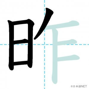 N3 漢字漢字【JLPT N3漢字】「昨」の意味・読み方・書き順 2020年11月6日 2020年11月6日 Facebook postはてブLINEPocketFeedlyfa-exclamation-triangle記事内に商品プロモーションが含まれる場合があります目次1 「昨」の漢字について2 「昨」の書き順3 「昨」を含む言葉4 関連書籍「昨」の漢字について読み方音読みさく訓読み-意味yesterday / last / previous部首日画数9JLPTレベルN3 「昨」の書き順1画目2画目3画目4画目5画目6画目7画目8画目9画目「昨」を含む言葉昨日(さくじつ / きのう)昨夜(さくや)一昨日(おととい)一昨年(おととし)関連書籍 新完全マスター漢字 日本語能力試験N3 Amazon 楽天市場 Yahooショッピング 日本語総まとめ N3 漢字 (「日本語能力試験」対策) Nihongo Soumatome N3 Kanji Kindle Amazon 楽天市場 Yahooショッピング 日本語を学ぶ外国人のための これで覚える! 漢字字典2500ナツメ社 Amazon 楽天市場 Yahooショッピング Facebook postはてブLINEPocketFeedly
