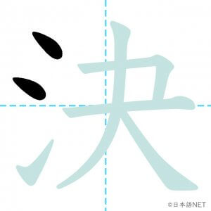 N3 漢字漢字【JLPT N3漢字】「決」の意味・読み方・書き順 2020年11月9日 2020年11月9日 Facebook postはてブLINEPocketFeedlyfa-exclamation-triangle記事内に商品プロモーションが含まれる場合があります目次1 「決」の漢字について2 「決」の書き順3 「決」を含む言葉4 関連書籍「決」の漢字について読み方音読みけつ訓読みき-める意味to decide部首水(氵,氺)画数7JLPTレベルN3 「決」の書き順1画目2画目3画目4画目5画目6画目7画目「決」を含む言葉決める(きめる)決まる(きまる)決定(けってい)解決(かいけつ)未決(みけつ)判決(はんけつ)否決(ひけつ)対決(たいけつ)決勝(けっしょう)決算(けっさん)関連書籍 新完全マスター漢字 日本語能力試験N3 Amazon 楽天市場 Yahooショッピング 日本語総まとめ N3 漢字 (「日本語能力試験」対策) Nihongo Soumatome N3 Kanji Kindle Amazon 楽天市場 Yahooショッピング 日本語を学ぶ外国人のための これで覚える! 漢字字典2500ナツメ社 Amazon 楽天市場 Yahooショッピング Facebook postはてブLINEPocketFeedly