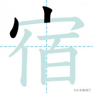 N3 漢字漢字【JLPT N3漢字】「宿」の意味・読み方・書き順 2020年11月10日 2020年11月10日 Facebook postはてブLINEPocketFeedlyfa-exclamation-triangle記事内に商品プロモーションが含まれる場合があります目次1 「宿」の漢字について2 「宿」の書き順3 「宿」を含む言葉4 関連書籍「宿」の漢字について読み方音読みしゅく訓読みやど やど-る意味inn / lodge部首宀画数11JLPTレベルN3 「宿」の書き順1画目2画目3画目4画目5画目6画目7画目8画目9画目10画目11画目「宿」を含む言葉宿題(しゅくだい)宿泊(しゅくはく)下宿(げしゅく)合宿(がっしゅく)民宿(みんしゅく)宿舎(しゅくしゃ)宿命(しゅくめい)関連書籍 新完全マスター漢字 日本語能力試験N3 Amazon 楽天市場 Yahooショッピング 日本語総まとめ N3 漢字 (「日本語能力試験」対策) Nihongo Soumatome N3 Kanji Kindle Amazon 楽天市場 Yahooショッピング 日本語を学ぶ外国人のための これで覚える! 漢字字典2500ナツメ社 Amazon 楽天市場 Yahooショッピング Facebook postはてブLINEPocketFeedly