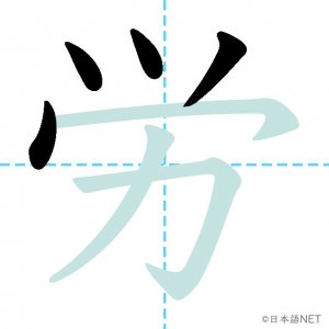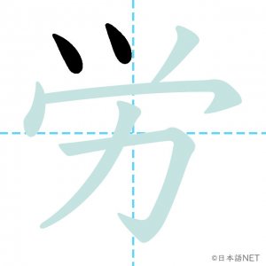 N3 漢字漢字【JLPT N3漢字】「労」の意味・読み方・書き順 2020年11月12日 2020年11月12日 Facebook postはてブLINEPocketFeedlyfa-exclamation-triangle記事内に商品プロモーションが含まれる場合があります目次1 「労」の漢字について2 「労」の書き順3 「労」を含む言葉4 関連書籍「労」の漢字について読み方音読みよう訓読みさま 意味labor部首力画数7JLPTレベルN3 「労」の書き順1画目2画目3画目4画目5画目6画目7画目「労」を含む言葉苦労(くろう)労働(ろうどう)労使(ろうし)疲労(ひろう)関連書籍 新完全マスター漢字 日本語能力試験N3 Amazon 楽天市場 Yahooショッピング 日本語総まとめ N3 漢字 (「日本語能力試験」対策) Nihongo Soumatome N3 Kanji Kindle Amazon 楽天市場 Yahooショッピング 日本語を学ぶ外国人のための これで覚える! 漢字字典2500ナツメ社 Amazon 楽天市場 Yahooショッピング Facebook postはてブLINEPocketFeedly