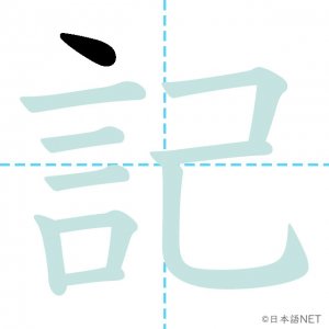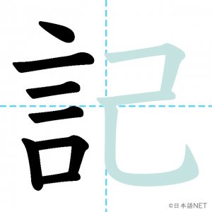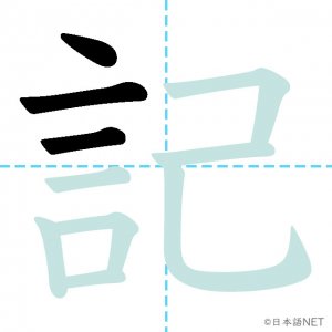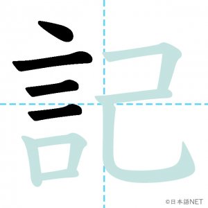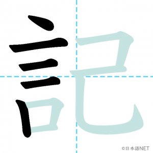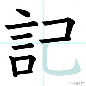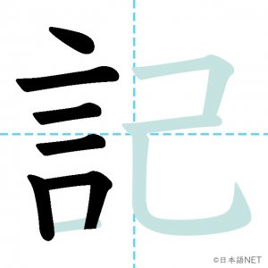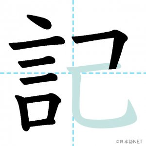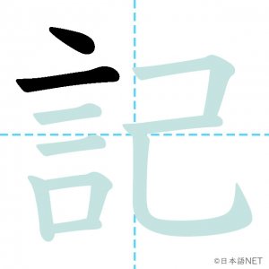 N3 漢字漢字【JLPT N3漢字】「記」の意味・読み方・書き順 2020年11月19日 2020年11月19日 Facebook postはてブLINEPocketFeedlyfa-exclamation-triangle記事内に商品プロモーションが含まれる場合があります目次1 「記」の漢字について2 「記」の書き順3 「記」を含む言葉4 関連書籍「記」の漢字について読み方音読みき訓読みしる-す意味to note / to write down部首言画数10JLPTレベルN3 「記」の書き順1画目2画目3画目4画目5画目6画目7画目8画目9画目10画目「記」を含む言葉日記(にっき)暗記(あんき)記入(きにゅう)記述(きじゅつ)記録(きろく)記憶(きおく)記念(きねん)伝記(でんき)関連書籍 新完全マスター漢字 日本語能力試験N3 Amazon 楽天市場 Yahooショッピング 日本語総まとめ N3 漢字 (「日本語能力試験」対策) Nihongo Soumatome N3 Kanji Kindle Amazon 楽天市場 Yahooショッピング 日本語を学ぶ外国人のための これで覚える! 漢字字典2500ナツメ社 Amazon 楽天市場 Yahooショッピング Facebook postはてブLINEPocketFeedly