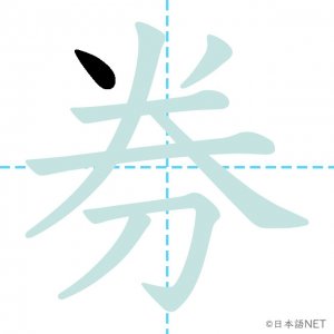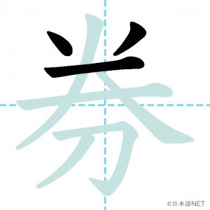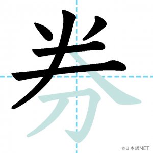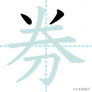 N3 漢字漢字【JLPT N3漢字】「券」の意味・読み方・書き順 2020年11月23日 2020年11月23日 Facebook postはてブLINEPocketFeedlyfa-exclamation-triangle記事内に商品プロモーションが含まれる場合があります目次1 「券」の漢字について2 「券」の書き順3 「券」を含む言葉4 関連書籍「券」の漢字について読み方音読みけん訓読み-意味ticket部首刀画数8JLPTレベルN3 「券」の書き順1画目2画目3画目4画目5画目6画目7画目8画目「券」を含む言葉券(けん)定期券(ていきけん)乗車券(じょうしゃけん)回数券(かいすうけん)旅券(りょけん)入場券(にゅうじょうけん)搭乗券(とうじょうけん)半券(はんけん)関連書籍 新完全マスター漢字 日本語能力試験N3 Amazon 楽天市場 Yahooショッピング 日本語総まとめ N3 漢字 (「日本語能力試験」対策) Nihongo Soumatome N3 Kanji Kindle Amazon 楽天市場 Yahooショッピング 日本語を学ぶ外国人のための これで覚える! 漢字字典2500ナツメ社 Amazon 楽天市場 Yahooショッピング Facebook postはてブLINEPocketFeedly