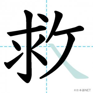 N3 漢字漢字【JLPT N3漢字】「救」の意味・読み方・書き順 2020年11月29日 2020年11月29日 Facebook postはてブLINEPocketFeedlyfa-exclamation-triangle記事内に商品プロモーションが含まれる場合があります目次1 「救」の漢字について2 「救」の書き順3 「救」を含む言葉4 関連書籍「救」の漢字について読み方音読みきゅう訓読みすく-う意味to rescue / to save部首攴(攵)画数11JLPTレベルN3 「救」の書き順1画目2画目3画目4画目5画目6画目7画目8画目9画目10画目11画目「救」を含む言葉救う(すくう)救急車(きゅうきゅうしゃ)救助(きゅうじょ)救命(きゅうめい)救援(きゅうえん)救済(きゅうさい)救護(きゅうご)関連書籍 新完全マスター漢字 日本語能力試験N3 Amazon 楽天市場 Yahooショッピング 日本語総まとめ N3 漢字 (「日本語能力試験」対策) Nihongo Soumatome N3 Kanji Kindle Amazon 楽天市場 Yahooショッピング 日本語を学ぶ外国人のための これで覚える! 漢字字典2500ナツメ社 Amazon 楽天市場 Yahooショッピング Facebook postはてブLINEPocketFeedly