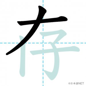N3 漢字漢字【JLPT N3漢字】「存」の意味・読み方・書き順 2020年11月29日 2020年11月29日 Facebook postはてブLINEPocketFeedlyfa-exclamation-triangle記事内に商品プロモーションが含まれる場合があります目次1 「存」の漢字について2 「存」の書き順3 「存」を含む言葉4 関連書籍「存」の漢字について読み方音読みそん ぞん訓読み-意味exist / be aware of部首子画数6JLPTレベルN3 「存」の書き順1画目2画目3画目4画目5画目6画目「存」を含む言葉存在(そんざい)依存(いぞん)保存(ほぞん)生存(せいぞん)共存(きょうぞん)存分(ぞんぶん)関連書籍 新完全マスター漢字 日本語能力試験N3 Amazon 楽天市場 Yahooショッピング 日本語総まとめ N3 漢字 (「日本語能力試験」対策) Nihongo Soumatome N3 Kanji Kindle Amazon 楽天市場 Yahooショッピング 日本語を学ぶ外国人のための これで覚える! 漢字字典2500ナツメ社 Amazon 楽天市場 Yahooショッピング Facebook postはてブLINEPocketFeedly