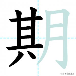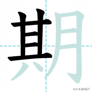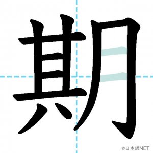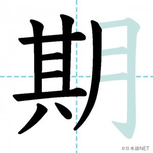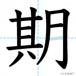 N3 漢字漢字【JLPT N3漢字】「期」の意味・読み方・書き順 2020年12月2日 2020年12月2日 Facebook postはてブLINEPocketFeedlyfa-exclamation-triangle記事内に商品プロモーションが含まれる場合があります目次1 「期」の漢字について2 「期」の書き順3 「期」を含む言葉4 関連書籍「期」の漢字について読み方音読みき ご訓読み-意味period / term部首月画数12JLPTレベルN3 「期」の書き順1画目2画目3画目4画目5画目6画目7画目8画目9画目10画目11画目12画目「期」を含む言葉期限(きげん)延期(えんき)学期(がっき)時期(じき)期限(きげん)長期(ちょうき)短期(たんき)上期(かみき)下期(しもき)期末(きまつ)期待(きたい)定期(ていき)関連書籍 新完全マスター漢字 日本語能力試験N3 Amazon 楽天市場 Yahooショッピング 日本語総まとめ N3 漢字 (「日本語能力試験」対策) Nihongo Soumatome N3 Kanji Kindle Amazon 楽天市場 Yahooショッピング 日本語を学ぶ外国人のための これで覚える! 漢字字典2500ナツメ社 Amazon 楽天市場 Yahooショッピング Facebook postはてブLINEPocketFeedly