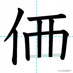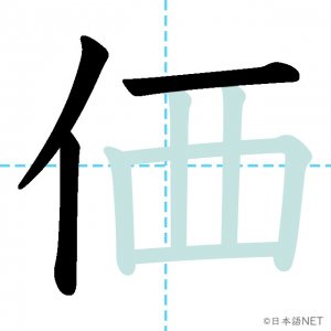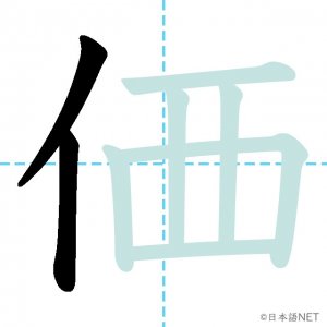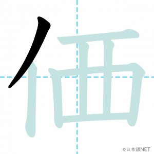N3 漢字漢字【JLPT N3漢字】「価」の意味・読み方・書き順 2020年12月5日 2020年12月5日 Facebook postはてブLINEPocketFeedlyfa-exclamation-triangle記事内に商品プロモーションが含まれる場合があります目次1 「価」の漢字について2 「価」の書き順3 「価」を含む言葉4 関連書籍「価」の漢字について読み方音読みか訓読みあたい意味value / price部首人(亻)画数8JLPTレベルN3 「価」の書き順1画目2画目3画目4画目5画目6画目7画目8画目「価」を含む言葉価値(かち)価格(かかく)評価(ひょうか)高価(こうか)定価(ていか)物価(ぶっか)対価(たいか)関連書籍 新完全マスター漢字 日本語能力試験N3 Amazon 楽天市場 Yahooショッピング 日本語総まとめ N3 漢字 (「日本語能力試験」対策) Nihongo Soumatome N3 Kanji Kindle Amazon 楽天市場 Yahooショッピング 日本語を学ぶ外国人のための これで覚える! 漢字字典2500ナツメ社 Amazon 楽天市場 Yahooショッピング Facebook postはてブLINEPocketFeedly