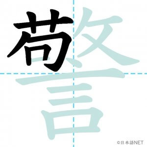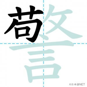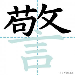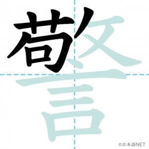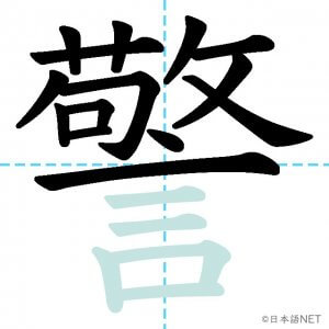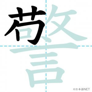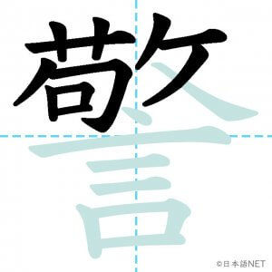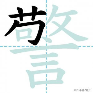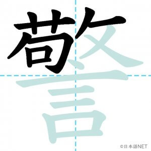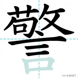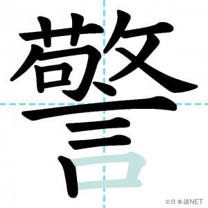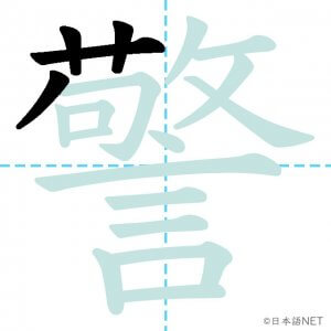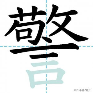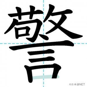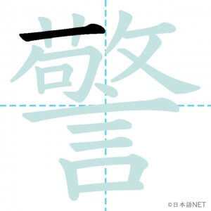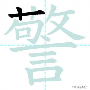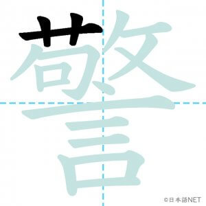 N3 漢字漢字【JLPT N3漢字】「警」の意味・読み方・書き順 2020年12月5日 2020年12月5日 Facebook postはてブLINEPocketFeedlyfa-exclamation-triangle記事内に商品プロモーションが含まれる場合があります目次1 「警」の漢字について2 「警」の書き順3 「警」を含む言葉4 関連書籍「警」の漢字について読み方音読みけい訓読み-意味to admonish部首言画数19JLPTレベルN3 「警」の書き順1画目2画目3画目4画目5画目6画目7画目8画目9画目10画目11画目12画目13画目14画目15画目16画目17画目18画目19画目「警」を含む言葉警察(けいさつ)警官(けいかん)警告(けいこく)警備(けいび)警戒(けいかい)関連書籍 新完全マスター漢字 日本語能力試験N3 Amazon 楽天市場 Yahooショッピング 日本語総まとめ N3 漢字 (「日本語能力試験」対策) Nihongo Soumatome N3 Kanji Kindle Amazon 楽天市場 Yahooショッピング 日本語を学ぶ外国人のための これで覚える! 漢字字典2500ナツメ社 Amazon 楽天市場 Yahooショッピング Facebook postはてブLINEPocketFeedly