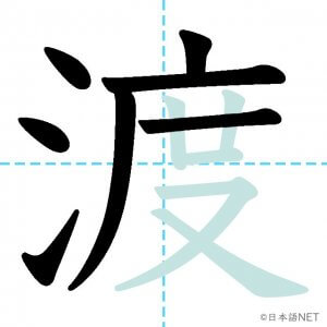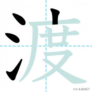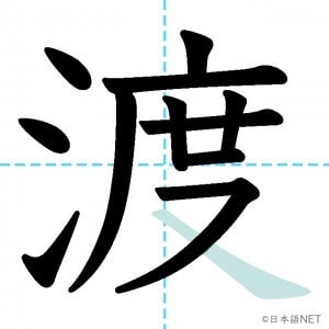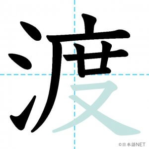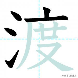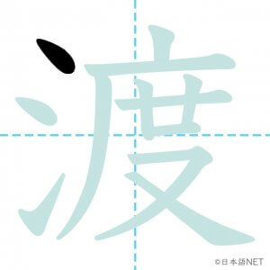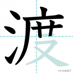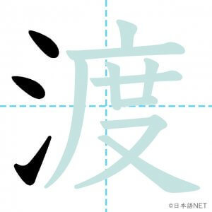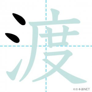 N3 漢字漢字【JLPT N3漢字】「渡」の意味・読み方・書き順 2020年12月5日 2021年2月10日 Facebook postはてブLINEPocketFeedlyfa-exclamation-triangle記事内に商品プロモーションが含まれる場合があります目次1 「渡」の漢字について2 「渡」の書き順3 「渡」を含む言葉4 「渡」を含む四字熟語5 関連書籍「渡」の漢字について読み方音読みと訓読みわた-す わた-る意味to cross / to deliver部首水(氵,氺)画数12JLPTレベルN3 「渡」の書き順1画目2画目3画目4画目5画目6画目7画目8画目9画目10画目11画目12画目「渡」を含む言葉渡す(わたす)渡る(わたる)譲渡(じょうと)渡り鳥(わたりどり)「渡」を含む四字熟語石橋を叩いて渡る関連書籍 新完全マスター漢字 日本語能力試験N3 Amazon 楽天市場 Yahooショッピング 日本語総まとめ N3 漢字 (「日本語能力試験」対策) Nihongo Soumatome N3 Kanji Kindle Amazon 楽天市場 Yahooショッピング 日本語を学ぶ外国人のための これで覚える! 漢字字典2500ナツメ社 Amazon 楽天市場 Yahooショッピング Facebook postはてブLINEPocketFeedly