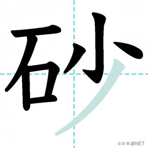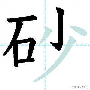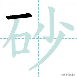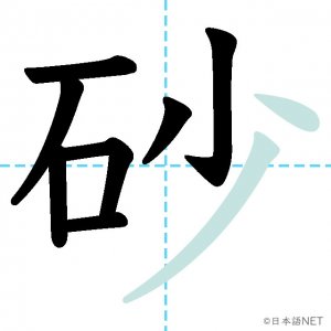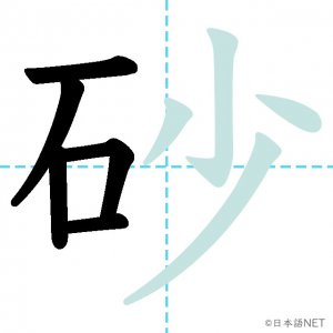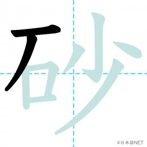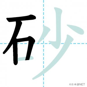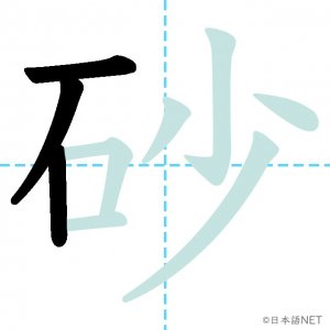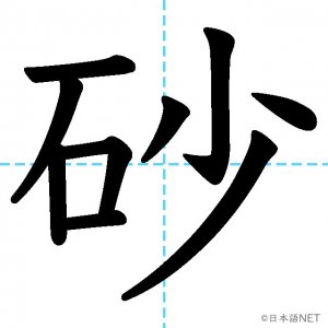 N3 漢字漢字【JLPT N3漢字】「砂」の意味・読み方・書き順 2020年12月8日 2020年12月8日 Facebook postはてブLINEPocketFeedlyfa-exclamation-triangle記事内に商品プロモーションが含まれる場合があります目次1 「砂」の漢字について2 「砂」の書き順3 「砂」を含む言葉4 関連書籍「砂」の漢字について読み方音読みさ しゃ訓読みすな意味sand部首石画数9JLPTレベルN3 「砂」の書き順1画目2画目3画目4画目5画目6画目7画目8画目9画目「砂」を含む言葉砂(すな)砂時計(すなどけい)砂利(じゃり)砂糖(さとう)砂漠(さばく)砂浜(すなはま)土砂降り(どしゃぶり)砂金(さきん)関連書籍 新完全マスター漢字 日本語能力試験N3 Amazon 楽天市場 Yahooショッピング 日本語総まとめ N3 漢字 (「日本語能力試験」対策) Nihongo Soumatome N3 Kanji Kindle Amazon 楽天市場 Yahooショッピング 日本語を学ぶ外国人のための これで覚える! 漢字字典2500ナツメ社 Amazon 楽天市場 Yahooショッピング Facebook postはてブLINEPocketFeedly