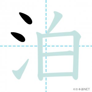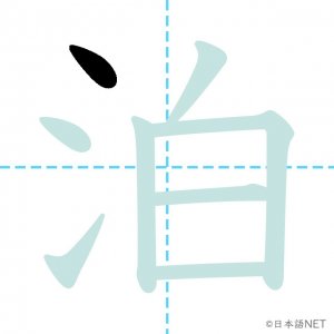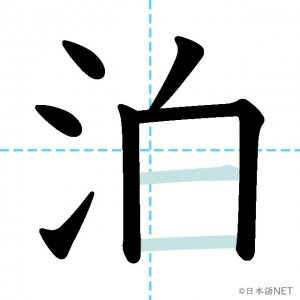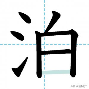 N3 漢字漢字【JLPT N3漢字】「泊」の意味・読み方・書き順 2020年12月10日 2020年12月10日 Facebook postはてブLINEPocketFeedlyfa-exclamation-triangle記事内に商品プロモーションが含まれる場合があります目次1 「泊」の漢字について2 「泊」の書き順3 「泊」を含む言葉4 関連書籍「泊」の漢字について読み方音読みはく訓読みと-まる と-める意味overnight / to put up at部首水(氵,氺)画数8JLPTレベルN3 「泊」の書き順1画目2画目3画目4画目5画目6画目7画目8画目「泊」を含む言葉泊まる(とまる)宿泊(しゅくはく)停泊(ていはく)外泊(がいはく)関連書籍 新完全マスター漢字 日本語能力試験N3 Amazon 楽天市場 Yahooショッピング 日本語総まとめ N3 漢字 (「日本語能力試験」対策) Nihongo Soumatome N3 Kanji Kindle Amazon 楽天市場 Yahooショッピング 日本語を学ぶ外国人のための これで覚える! 漢字字典2500ナツメ社 Amazon 楽天市場 Yahooショッピング Facebook postはてブLINEPocketFeedly
