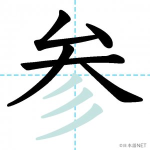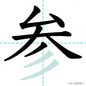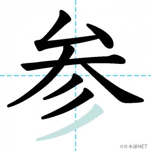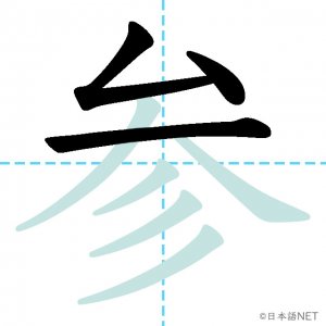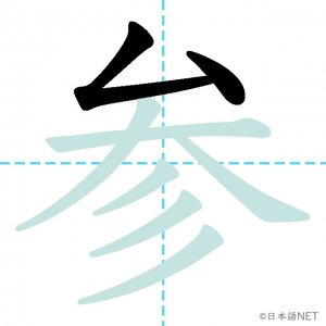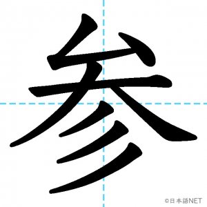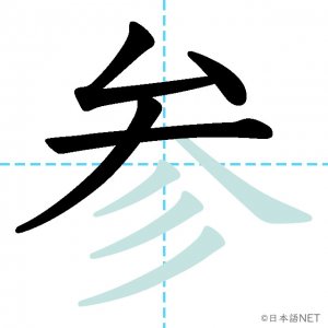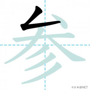 N3 漢字漢字【JLPT N3漢字】「参」の意味・読み方・書き順 2020年12月10日 2020年12月10日 Facebook postはてブLINEPocketFeedlyfa-exclamation-triangle記事内に商品プロモーションが含まれる場合があります目次1 「参」の漢字について2 「参」の書き順3 「参」を含む言葉4 関連書籍「参」の漢字について読み方音読みさん訓読みまい-る意味to visit / to join / to participate部首厶画数8JLPTレベルN3 「参」の書き順1画目2画目3画目4画目5画目6画目7画目8画目「参」を含む言葉参加(さんか)参る(まいる)参考(さんこう)参照(さんしょう)持参(じさん)参観(さんかん)参画(さんかく)参議院(さんぎいん)人参(にんじん)関連書籍 新完全マスター漢字 日本語能力試験N3 Amazon 楽天市場 Yahooショッピング 日本語総まとめ N3 漢字 (「日本語能力試験」対策) Nihongo Soumatome N3 Kanji Kindle Amazon 楽天市場 Yahooショッピング 日本語を学ぶ外国人のための これで覚える! 漢字字典2500ナツメ社 Amazon 楽天市場 Yahooショッピング Facebook postはてブLINEPocketFeedly