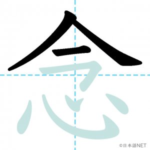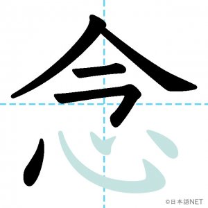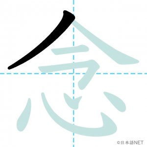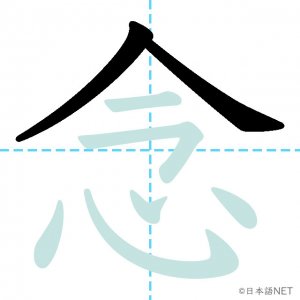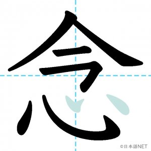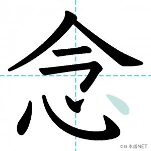 N3 漢字漢字【JLPT N3漢字】「念」の意味・読み方・書き順 2020年12月10日 2020年12月10日 Facebook postはてブLINEPocketFeedlyfa-exclamation-triangle記事内に商品プロモーションが含まれる場合があります目次1 「念」の漢字について2 「念」の書き順3 「念」を含む言葉4 関連書籍「念」の漢字について読み方音読みねん訓読み-意味wish / desire / idea / attention部首心(忄⺗)画数8JLPTレベルN3 「念」の書き順1画目2画目3画目4画目5画目6画目7画目8画目「念」を含む言葉記念(きねん)念願(ねんがん)念じる(ねんじる)信念(しんねん)入念(にゅうねん)専念(せんねん)丹念(たんねん)概念(がいねん)無念(むねん)念仏(ねんぶつ)関連書籍 新完全マスター漢字 日本語能力試験N3 Amazon 楽天市場 Yahooショッピング 日本語総まとめ N3 漢字 (「日本語能力試験」対策) Nihongo Soumatome N3 Kanji Kindle Amazon 楽天市場 Yahooショッピング 日本語を学ぶ外国人のための これで覚える! 漢字字典2500ナツメ社 Amazon 楽天市場 Yahooショッピング Facebook postはてブLINEPocketFeedly