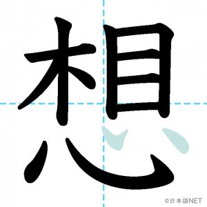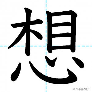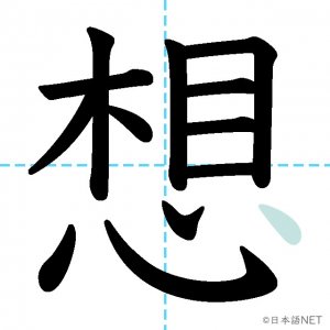 N3 漢字漢字【JLPT N3漢字】「想」の意味・読み方・書き順 2020年12月10日 2020年12月10日 Facebook postはてブLINEPocketFeedlyfa-exclamation-triangle記事内に商品プロモーションが含まれる場合があります目次1 「想」の漢字について2 「想」の書き順3 「想」を含む言葉4 関連書籍「想」の漢字について読み方音読みそう そ訓読みおも-い意味to think / idea / concept部首心(忄⺗)画数13JLPTレベルN3 「想」の書き順1画目2画目3画目4画目5画目6画目7画目8画目9画目10画目11画目12画目13画目「想」を含む言葉予想(よそう)想像(そうぞう)感想(かんそう)回想(かいそう)幻想(げんそう)理想(りそう)発想(はっそう)愛想(あいそ)関連書籍 新完全マスター漢字 日本語能力試験N3 Amazon 楽天市場 Yahooショッピング 日本語総まとめ N3 漢字 (「日本語能力試験」対策) Nihongo Soumatome N3 Kanji Kindle Amazon 楽天市場 Yahooショッピング 日本語を学ぶ外国人のための これで覚える! 漢字字典2500ナツメ社 Amazon 楽天市場 Yahooショッピング Facebook postはてブLINEPocketFeedly